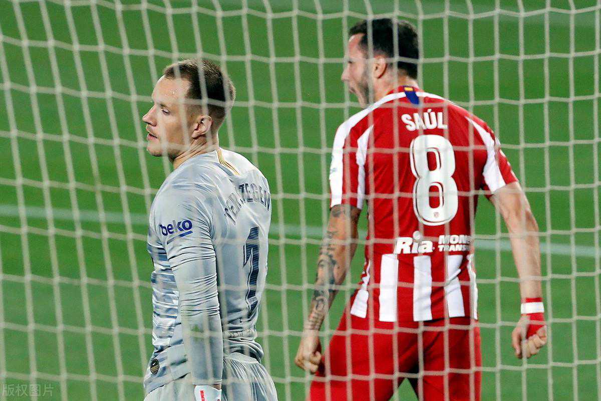 在网友们连连表示,科斯塔难道是马竞内鬼的时候,埃尔南德斯在VAR介入之后认为特尔施特根扑点的时候双脚齐齐在踏在门线之外,一张黄卡给了特尔施特根,马竞“再”获得点球机会,皮克抗议也吃到黄卡一张。这次马竞不再让科斯塔来罚,而是萨乌尔早早将球抱住,面对特尔施特根,萨乌尔稳稳将球罚进,马竞1:1快速扳平了比分。