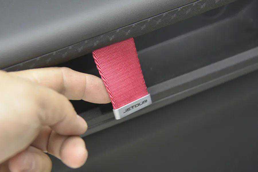车门把手位置设计了一个红色磁吸搭扣,很有意思。