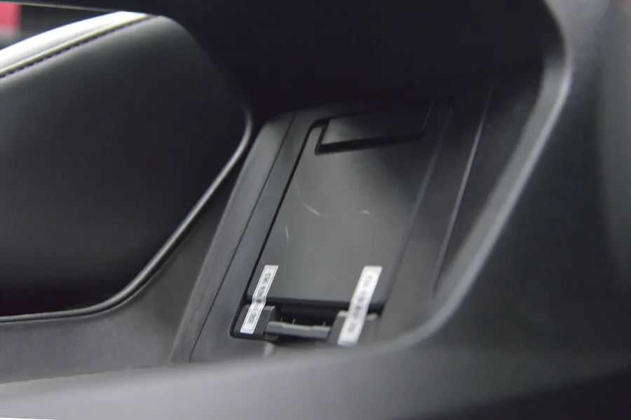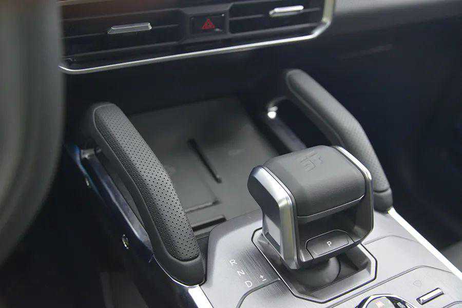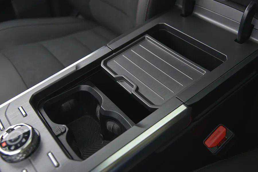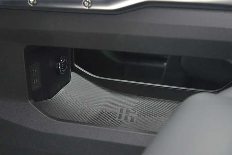 因为是电子档杆,所以下方能有较大尺寸的储物空间,配有USB及12V电源接口。