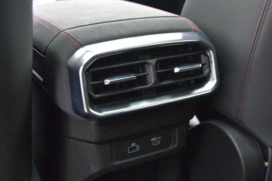 座椅全系都是仿皮包裹,也可以选择织物混搭或翻毛皮混搭。坐垫软硬适中,包裹性一般,但舒适性好,高配支持座椅加热和通风。