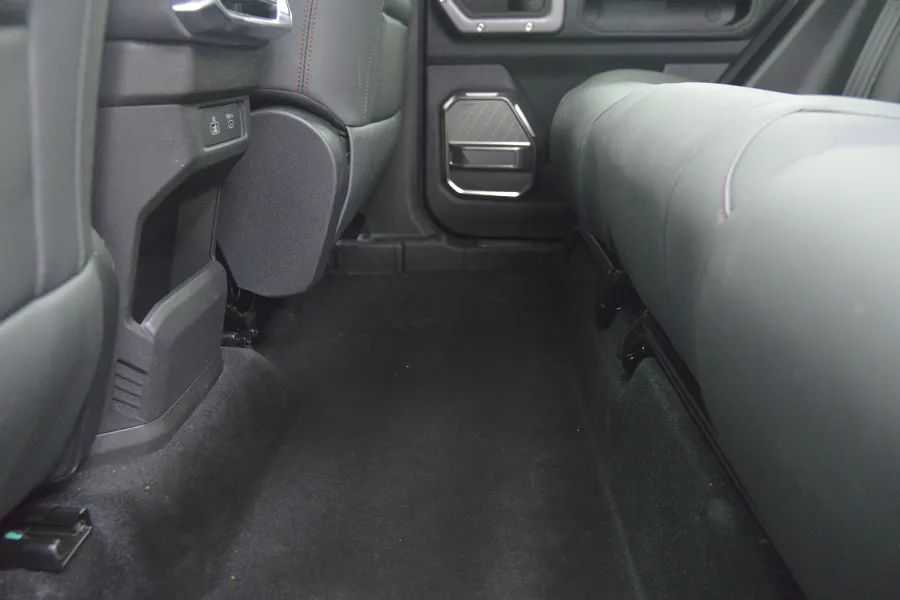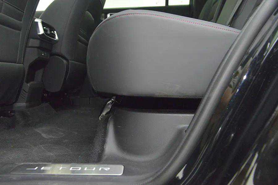这辆车的轴距有2.8米,所以后排乘客的腿部空间不错。B柱位置也有相应的把手,后排有独立的空调出风口。后排中央地板是纯平的,一辆没有大梁的四驱SUV居然做到纯平,也是不容易。