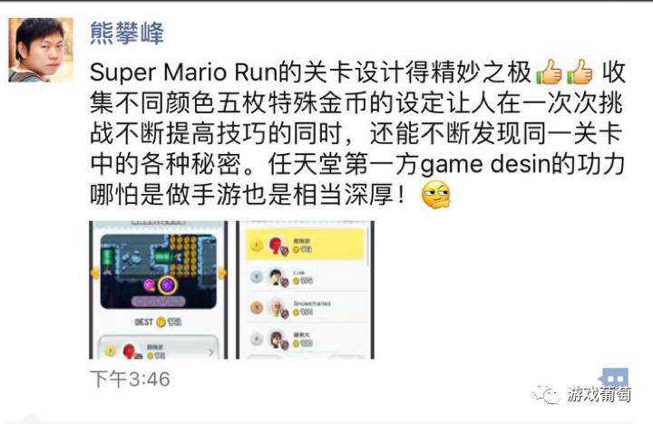在国内,许多从业者也对《超级马里奥Run》给出了一边倒式的好评。有相当数量的从业者都认为,这款游戏的新手引导、关卡设计极其精妙,展现了任天堂深厚的设计功力。