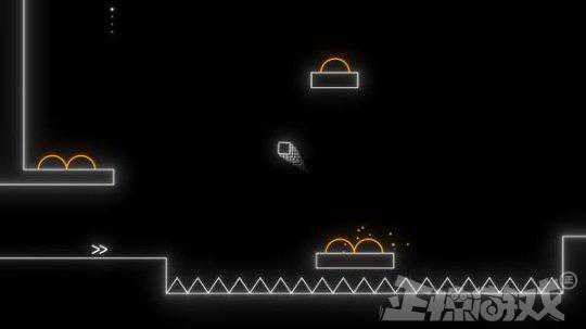 但是这并不妨碍它肆无忌惮地虐待玩家,因为游戏里不仅需要玩家通过操作小方块进行前行、弹跳、加速、抓吊绳和利用弹射装置等玩法进行横版过关以外,还给强迫症玩家设置了在游戏中需要收集的音符的可选项。