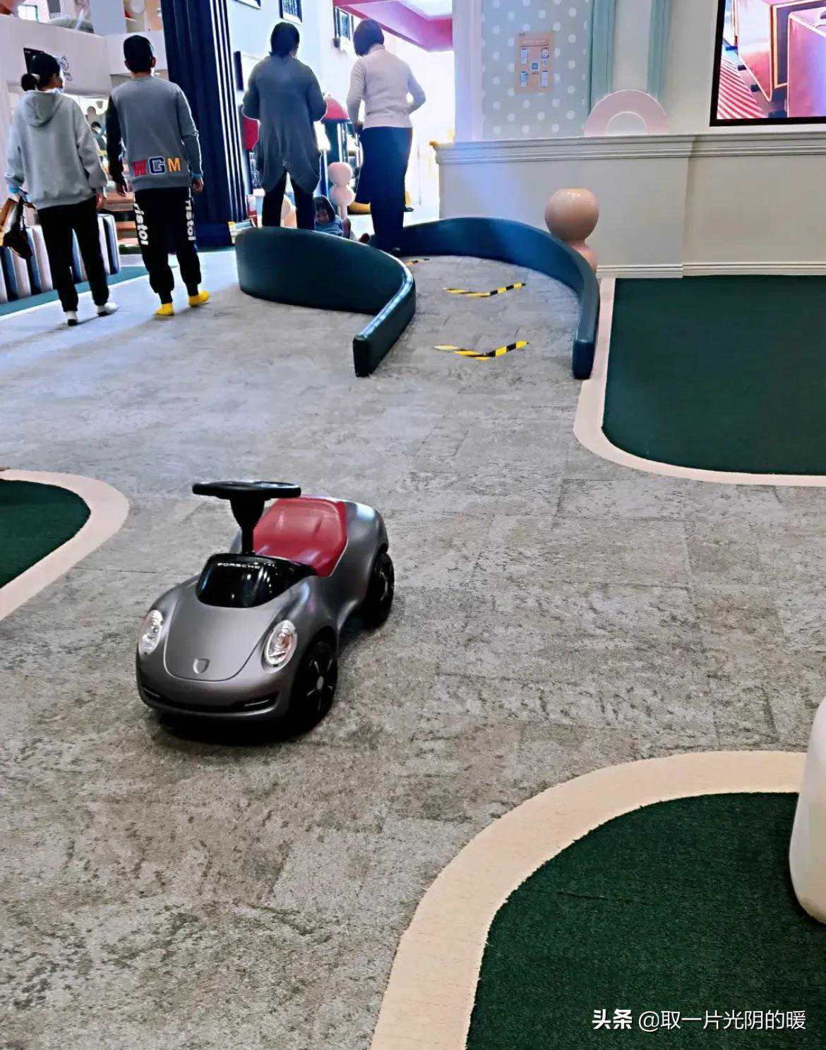迷你汽车:小孩子随意开的“保时捷”滑行车是进口的papahug,而且有单独的坡道供玩。