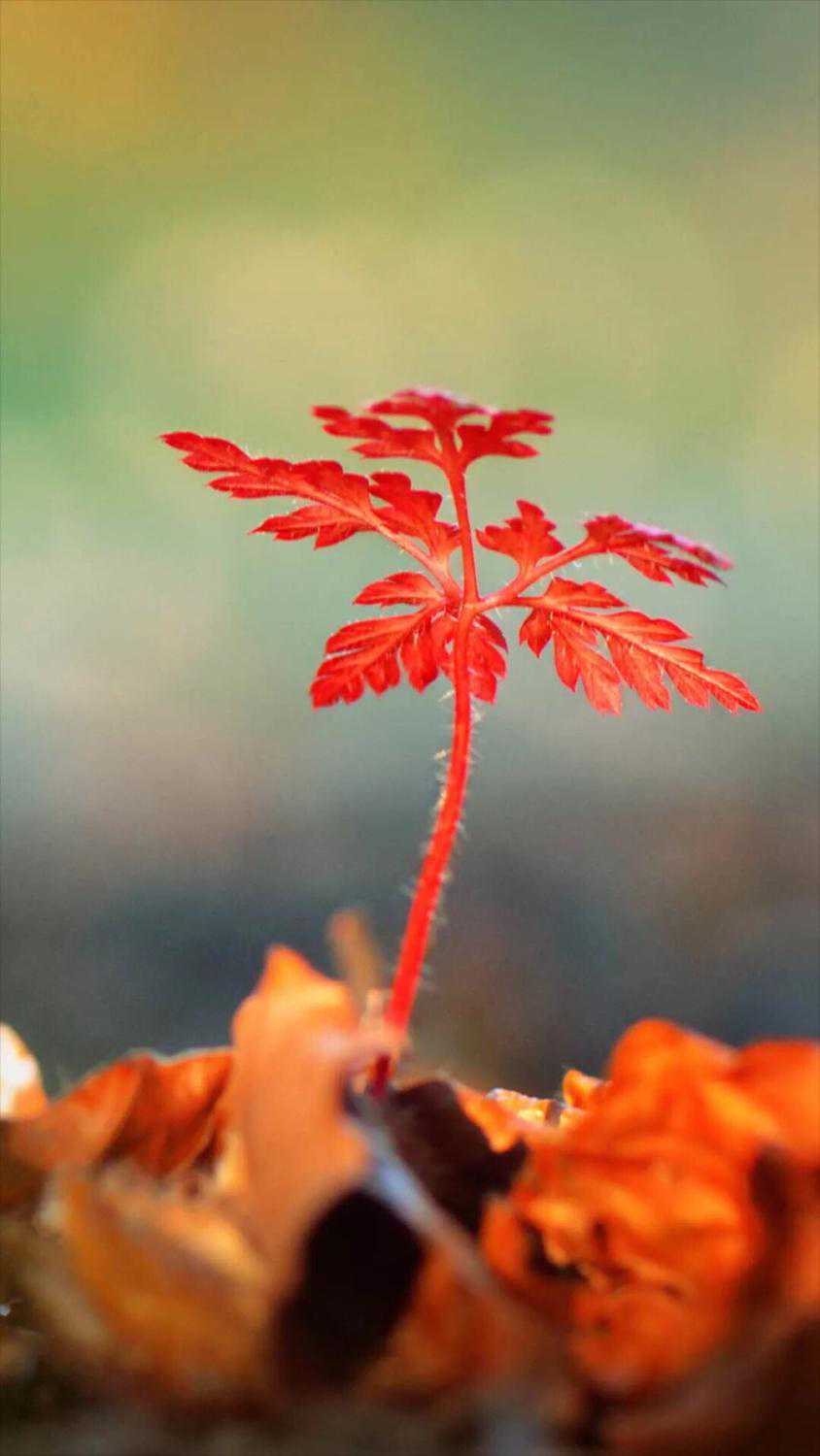 雨还在下着,可是透过雨帘,小秦发觉雨中的枫叶更显得清新可爱,枫叶的红更显得夸张和浓艳。他取出相机找准角度开始拍摄。