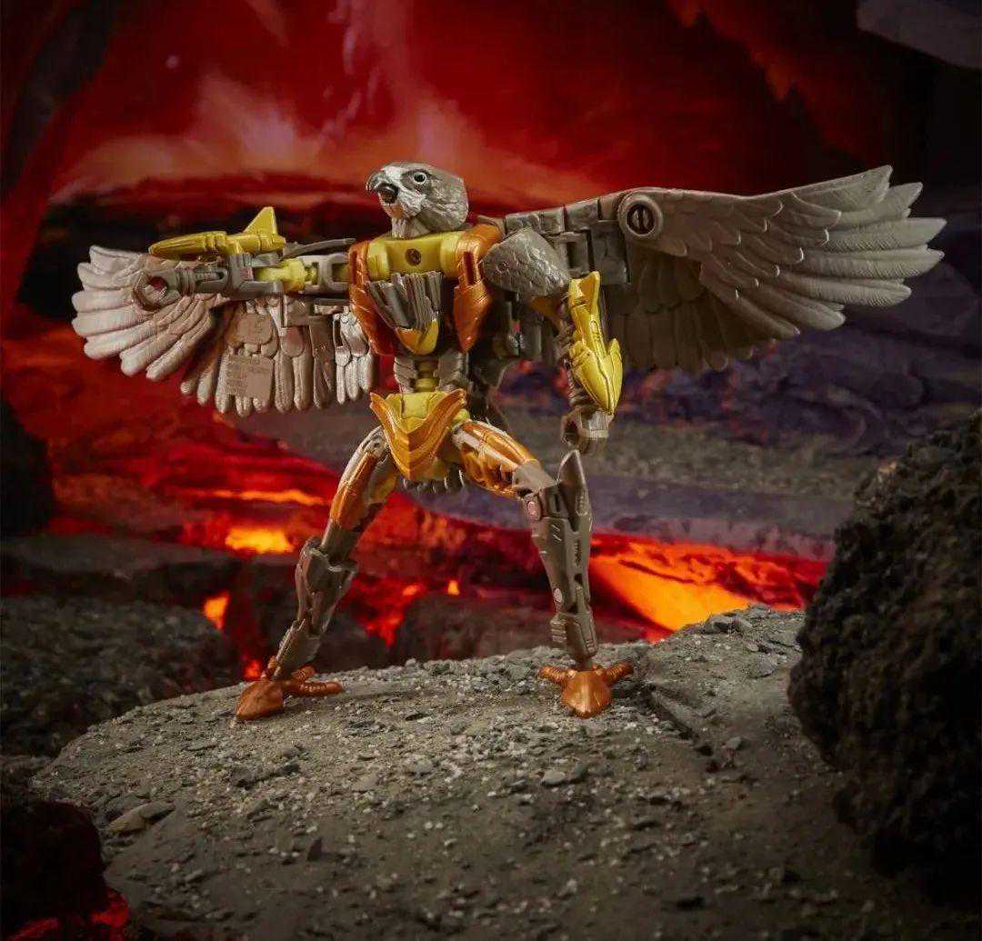 人形和兽形美型度都很不错,不再是像世纪初的玩具那样,大部分保兽形而轻人形。金属变体特有的大面积电镀在这款玩具上面同样出彩。右肩有一个透明驾驶舱的设计,应该是对应剧情里操纵虎鹰的沃克星人。