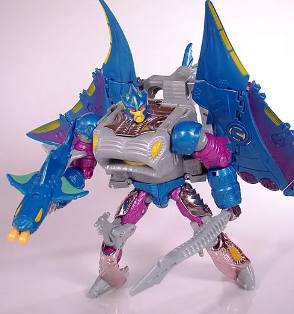 这款虎鹰即使拿到现在的产品线来看,也是不可多得的一款精品。要是非要挑缺点,一个问题可能是配色有点过于偏蓝,电镀没有那种动画里蓝泛紫的感觉。再一个就是白色原色塑料大量暴露,容易在紫外线作用下氧化发黄,所以现在的二手市场很难找到品相较好的虎鹰,毕竟已经经历了二十多年的风风雨雨了。