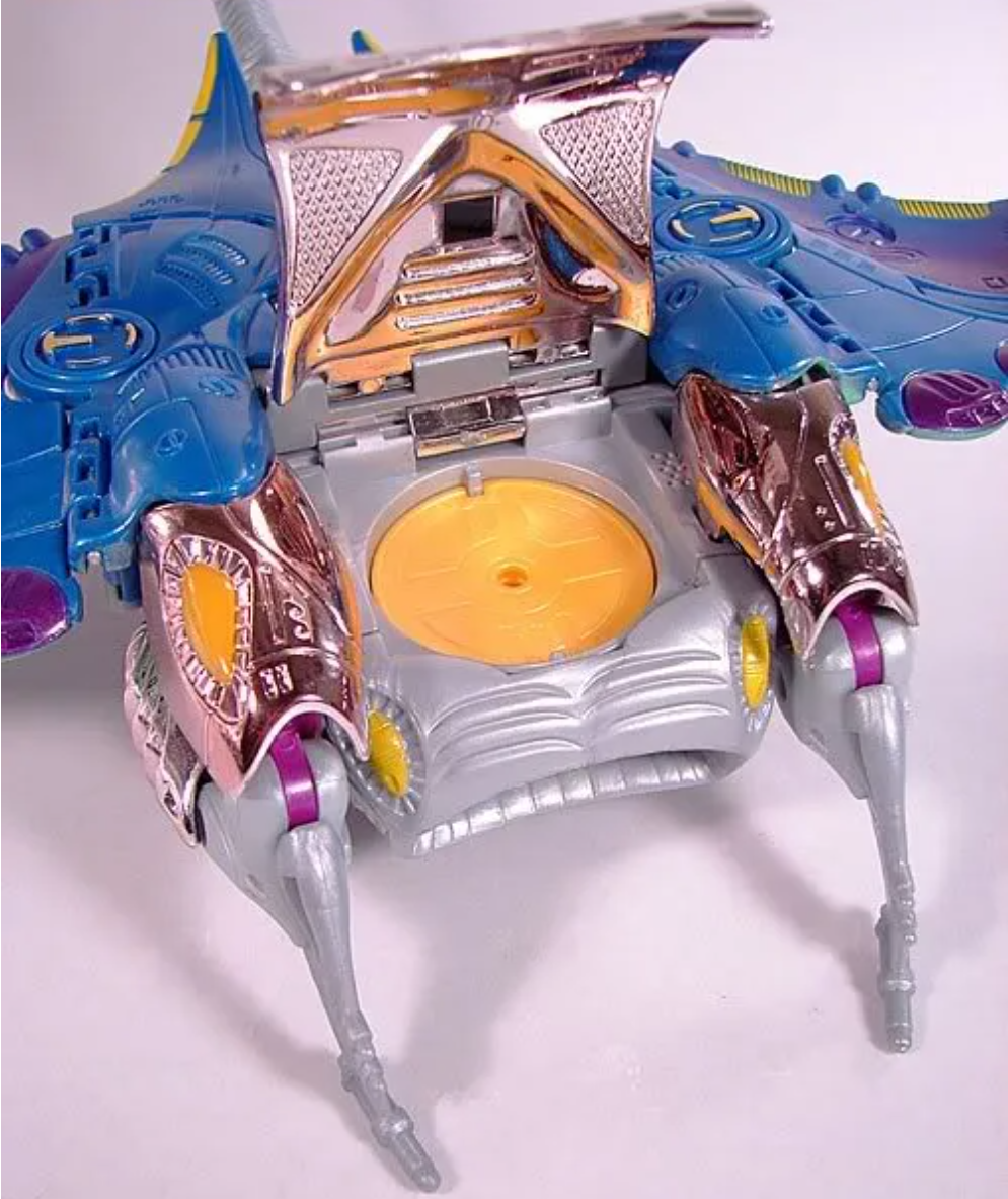 人形终于实现了女性的身材特征,翅膀通过多段折叠在背后进行收纳,有效地缩小了背包面积,更加符合《超能勇士》动画中的设定。