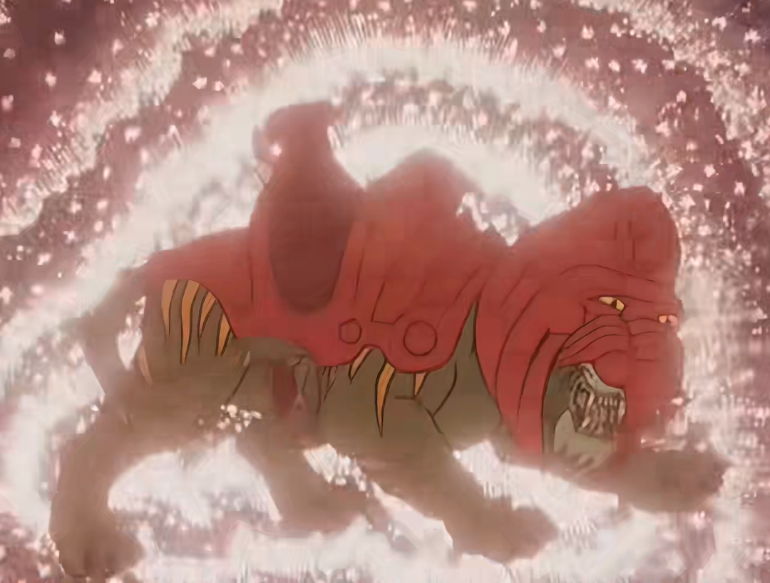 闪电勇士算是巨无霸的团宠了,作为动画中唯二的融合变体,他的野兽形态是狼和老鹰融合体——一个憨憨可爱的飞狼(飞狗?)。巨无霸的标志其实就是以闪电勇士的面罩为原型设计的。