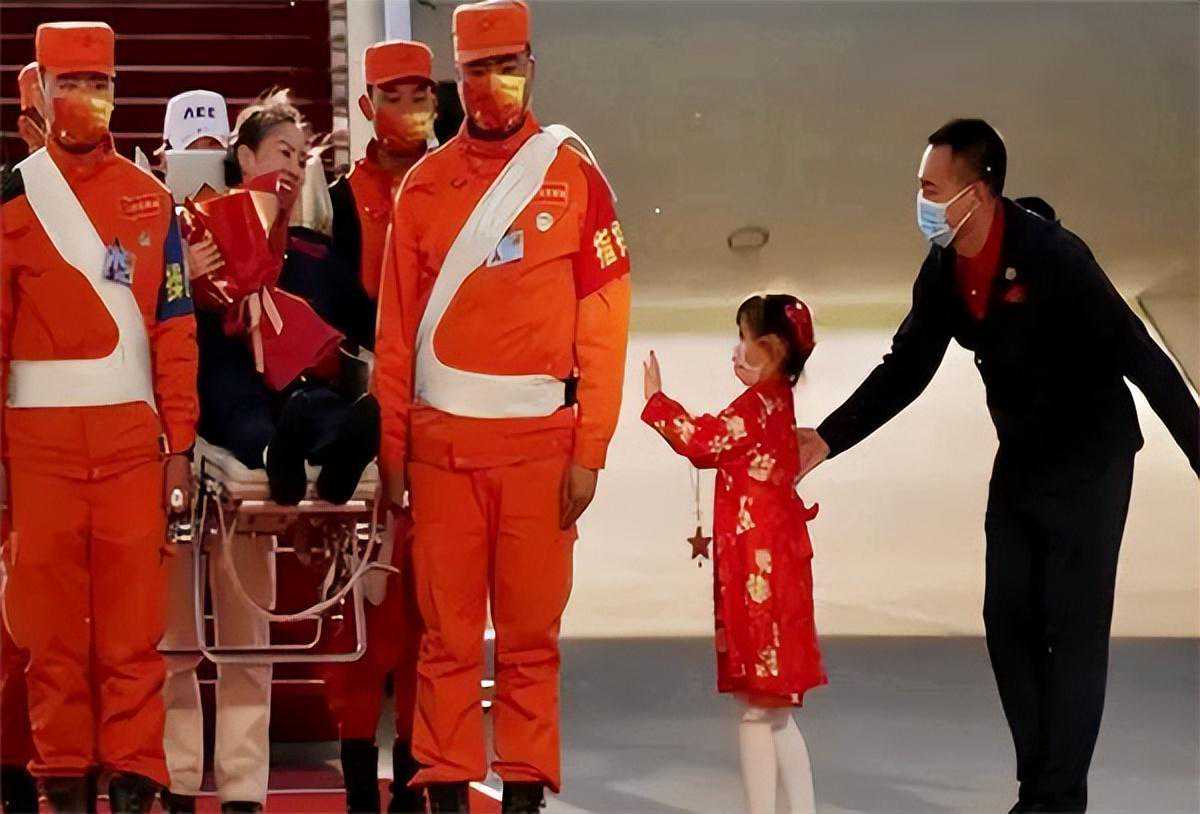 出来见到女儿和家人的那一刻,双眼泛红,忍不住想抱抱女儿,并告诉她,摘星星的妈妈回来了。