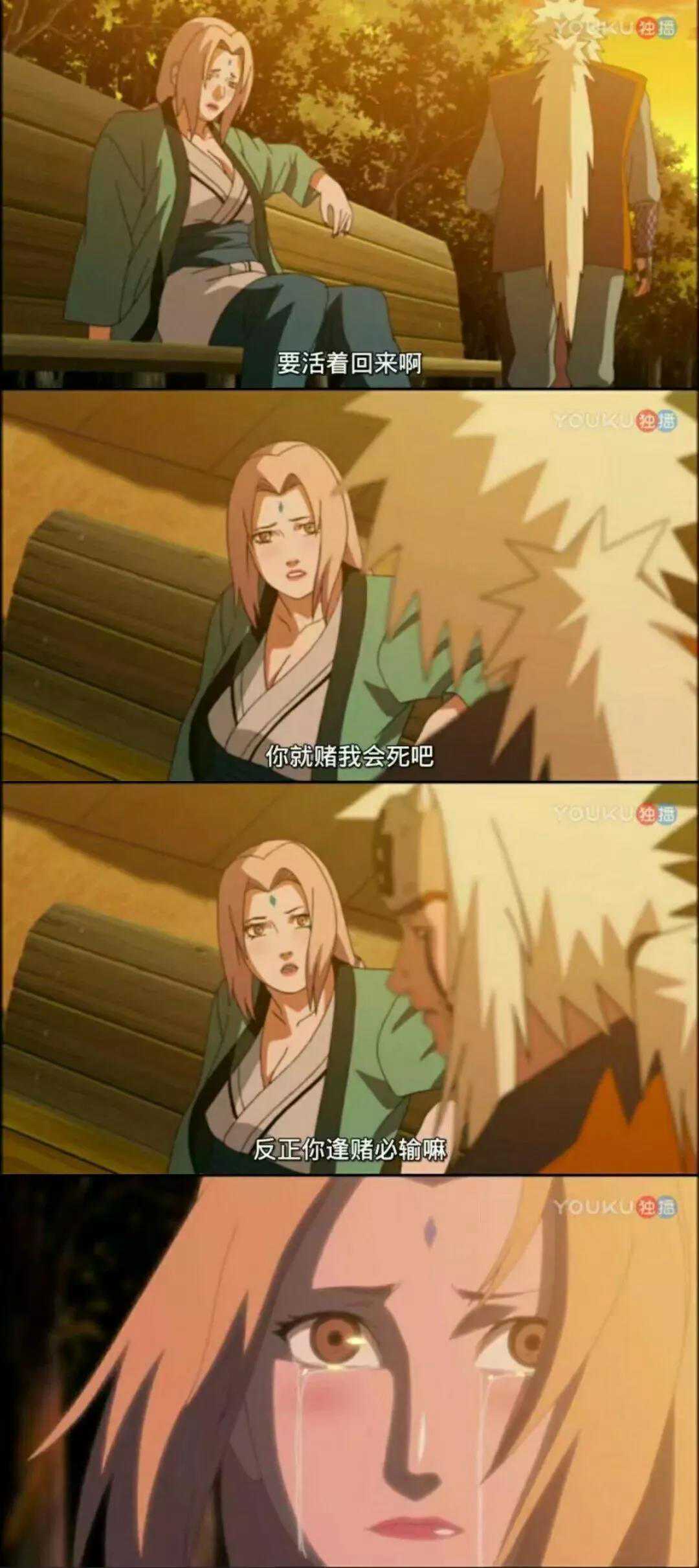 自来也死的时候很催泪,因为‘豪情物语’,以后再也看不见好色仙人了,真的像是送走一个故人。