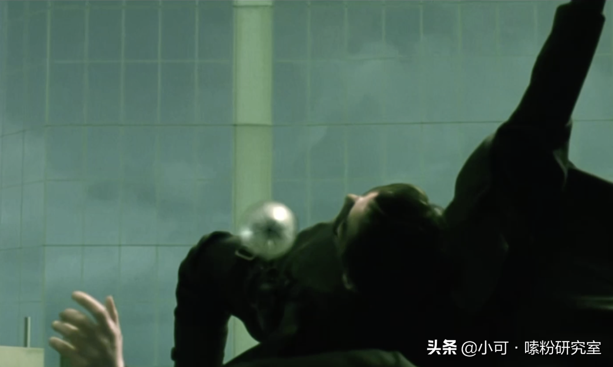 为了尽快找到Morpheus,Neo和Trinity借助电梯的反向拉伸和爆炸,来到了楼顶,并在此上演了最经典的“子弹时间”戏码,但还没有完全掌握这项技能的Neo,帅不过三秒久就倒地了,好在有Trinity补枪救援。