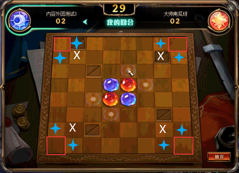 知道上面规则后,根据笔者与AI的对战经验来看,可以用以下套路取胜: