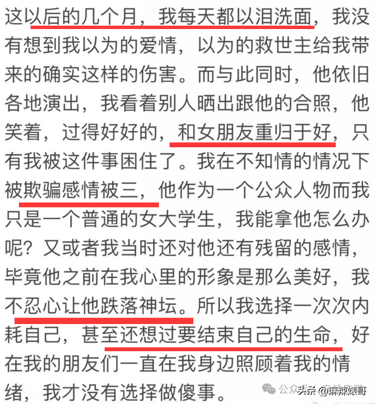 感情上的事本就是他理亏在先,一是劈腿,二是劈腿后没有好好处理,最后遭到素人曝光,作为公众人物最好的回应是“犯错就要认,挨打要立正”,最坏的回应是狡辩。