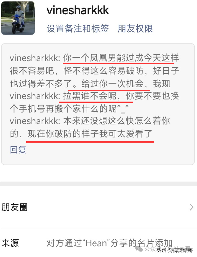 这一点可能是因为杨波女友在聊天中用女生的私人信息去威胁了她。
