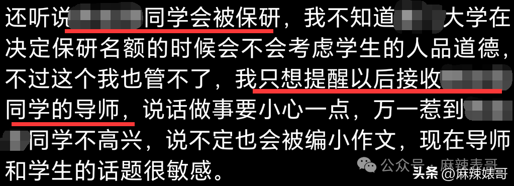 据说女生被保研,杨波提醒导师注意和女生说话的分寸,不然会被写小作文。