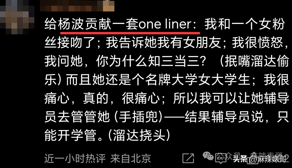 参加了两季《脱口秀大会》,杨波有了一些自己的粉丝,最近的瓜就和粉丝有关。