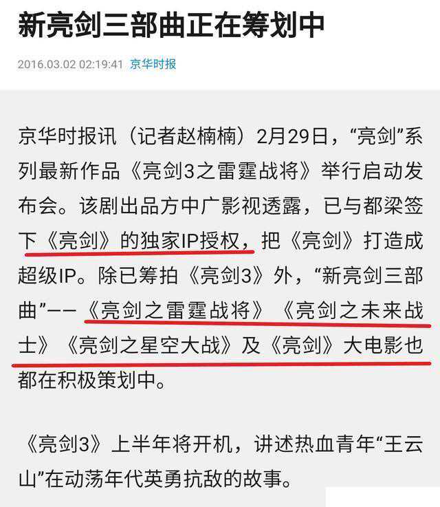 影视公司的公告,《新亮剑三部曲》已经成为储备项目