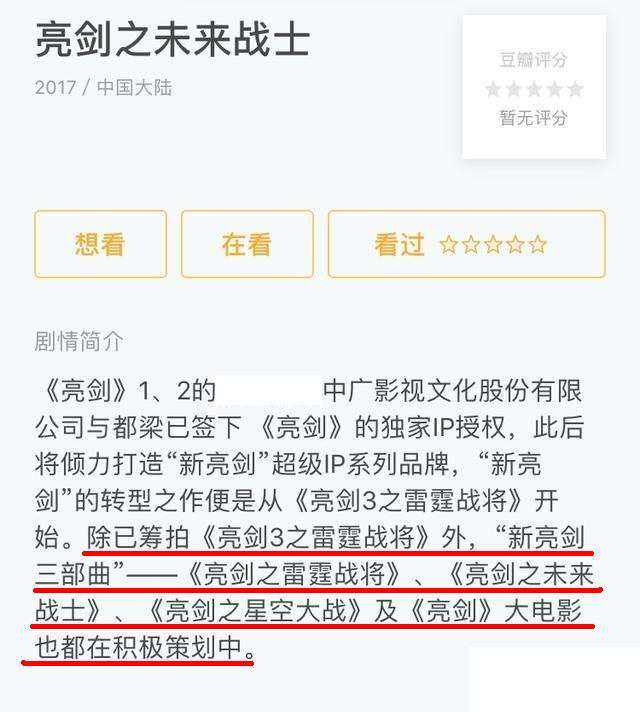 《雷霆战将》已经下架,但搜索它的资料才发现,这部作品原计划拍3部,全名是《新亮剑三部曲》,《雷霆战将》是第一部,后两部是《亮剑之未来战士》、《亮剑之星空大战》。目的是打造"新亮剑超级IP"。