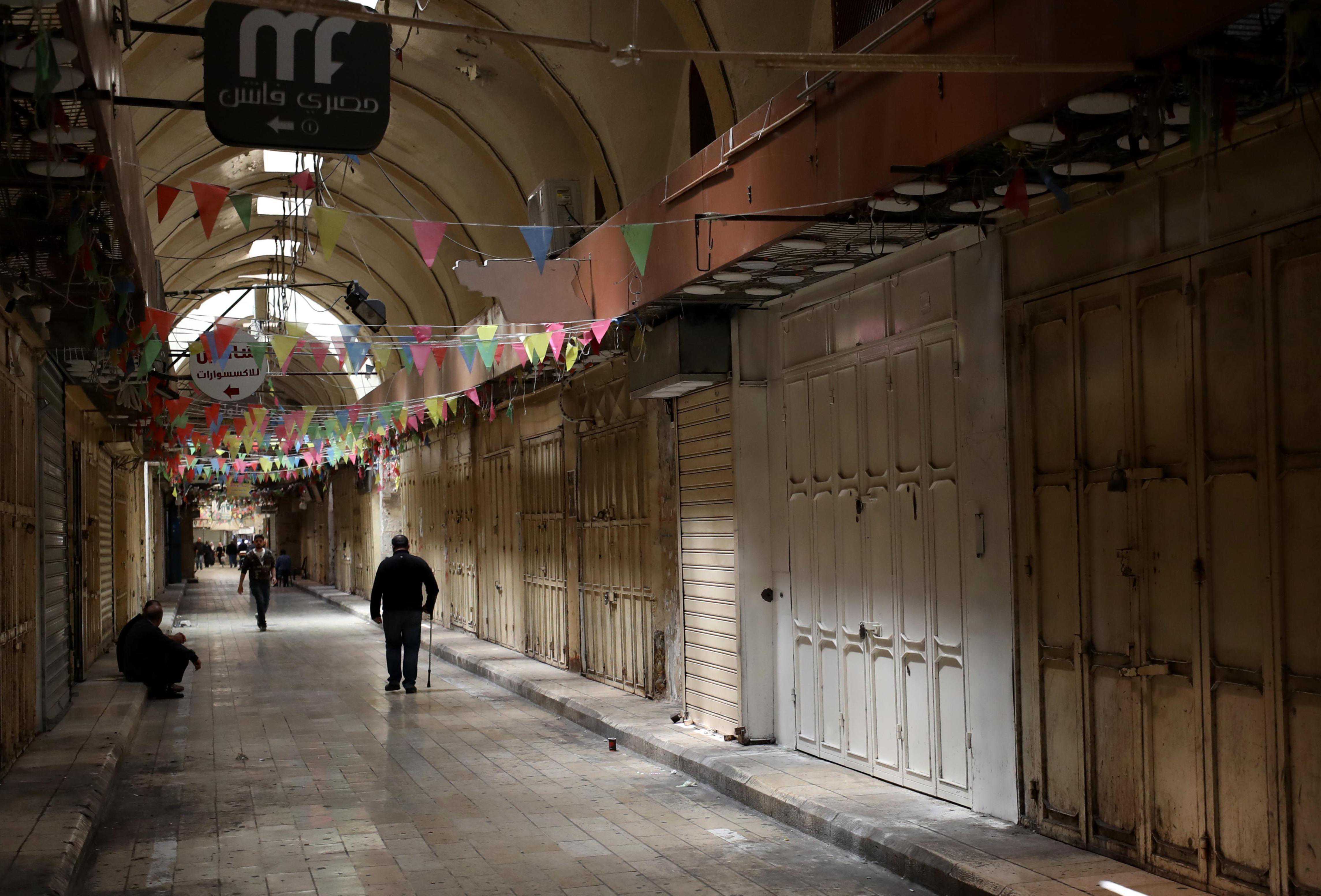 5月2日,约旦河西岸城市纳布卢斯的部分商店参与罢工,抗议卡迪尔·阿德南被以色列关押后死亡。新华社发(艾曼·努巴尼摄)