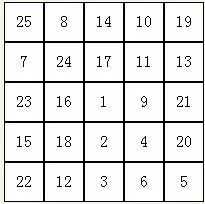 在一张有25个小方格的表中,将1-25的数字打乱顺序,填写在里面(见下表),然后以最快的速度从1数到25,要边读边指出,同时计时。