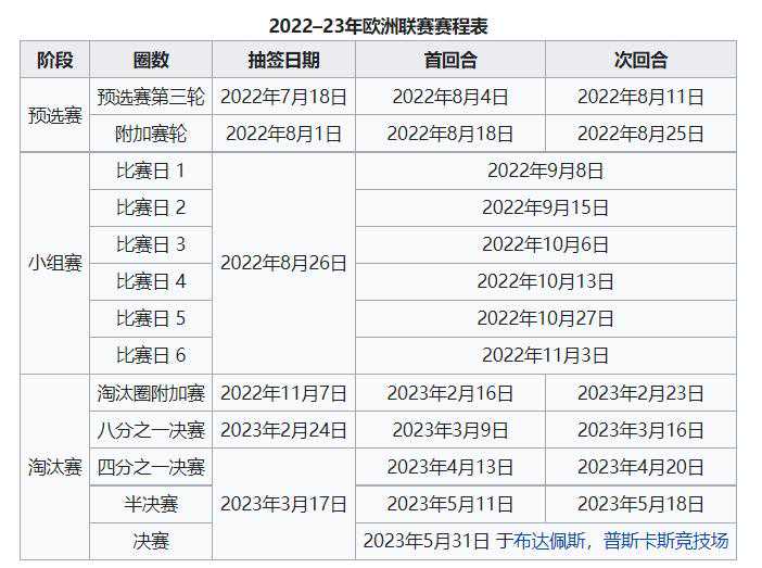 本赛季欧联杯赛程