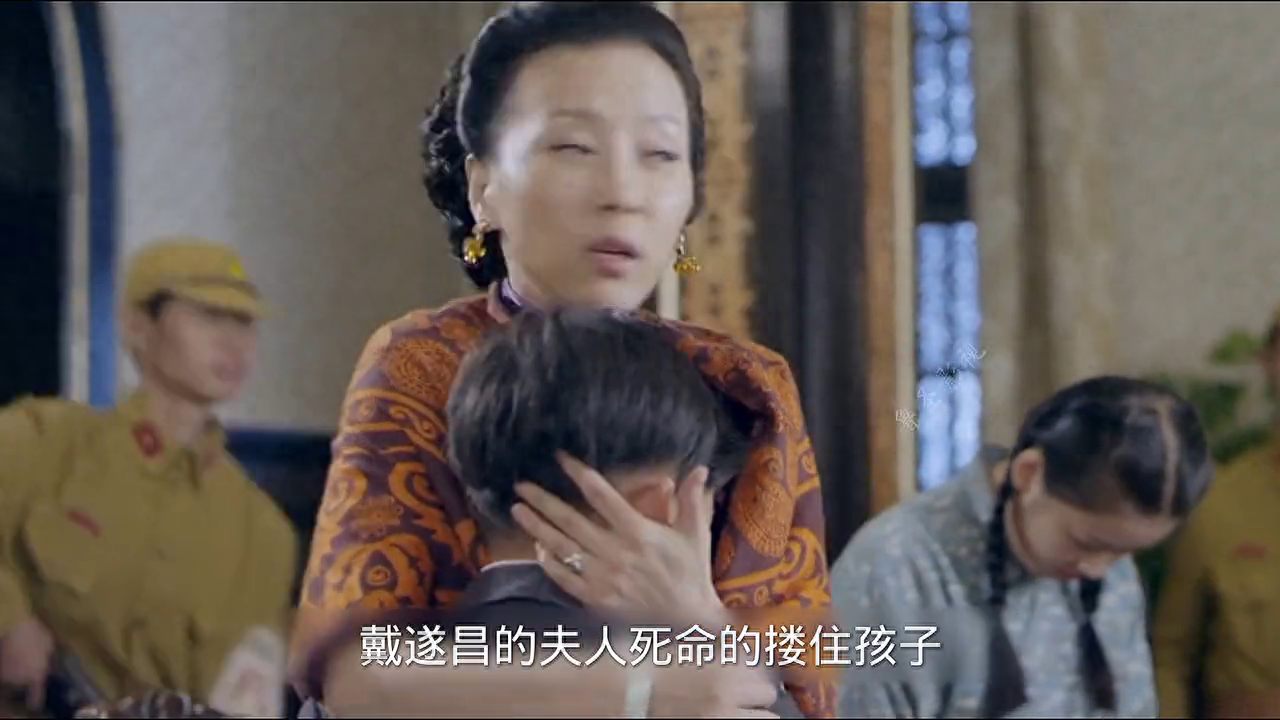 日军冲进戴遂昌的家中,吓得保姆果盘都端不住。戴遂昌的夫人死命的搂住孩子,野田用孩子的性命相威胁,逼迫戴遂昌的夫人按他们说的做,原来是让她在窗边弹古筝,让回家的戴遂昌放松警惕。