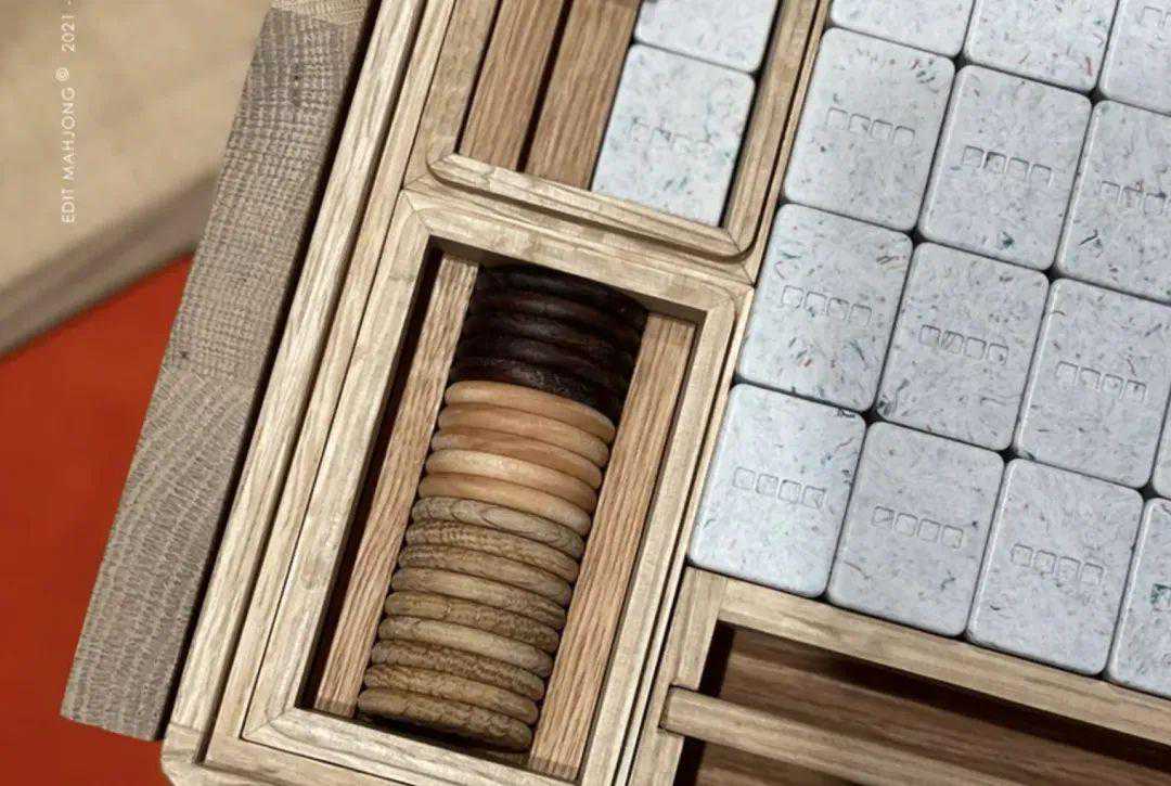 史上第一款可降解麻将,香港EDITECTURE联手EDITTHEBRAND推出了一款可持续麻将,运用废弃衣物布料打造100%可生物降解环保麻将。为了展现麻将美感,还特别采用了手工木制抽屉与其呼应。