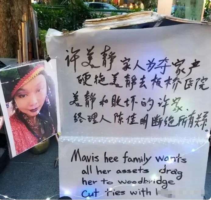 她还在旁边的纸板上写因为住院,被家人强制性转移财产,并且不承认自己得过精神病。