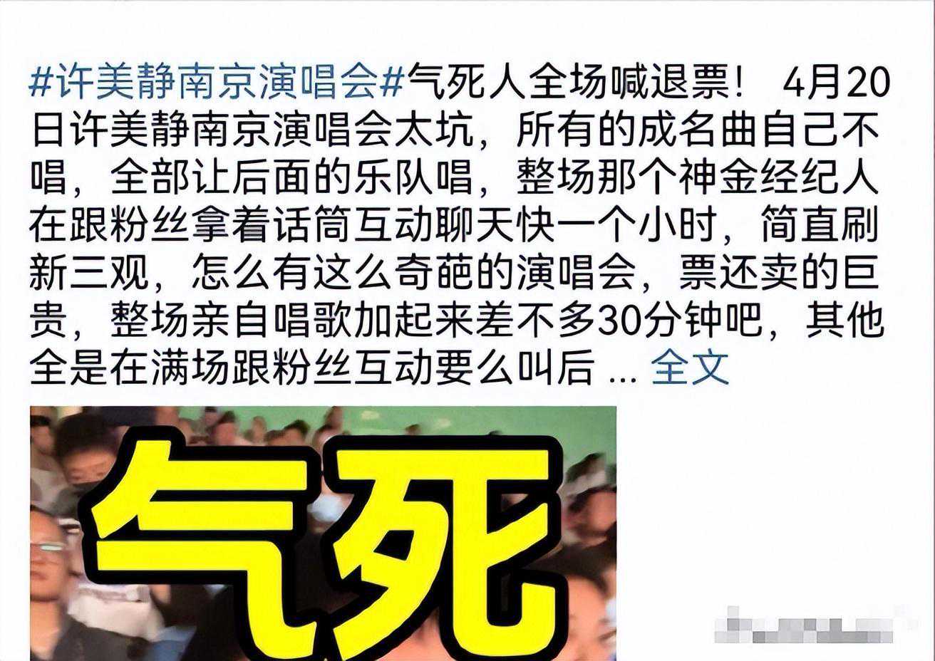 有粉丝不满,直接现场喊退票,许美静的经纪人还说不想唱就走。