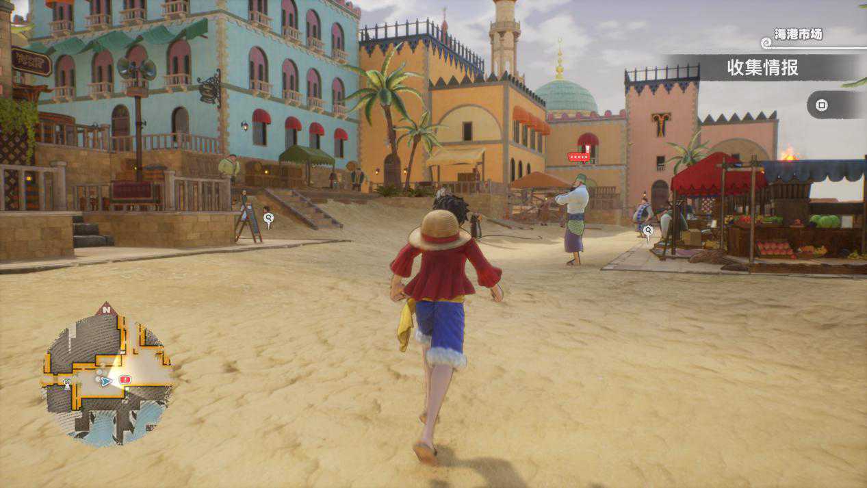 将游戏设计的重心放在“玩法”上,当然不是什么坏事。但《海贼王:时光旅诗》的问题在于,它好像时刻都在担心自己搭建的场景被玩家忽略,因此它无时无刻不在地图中塞入着大量可收集内容和没有营养的对话情节,一件本来能够简单完成的事情,往往会被强行分解成好几步,为了继续故事多次往返于几个地点之间的情况更是时常发生,加上游戏中角色行动速度较慢,导致这个过程显得更加冗长。