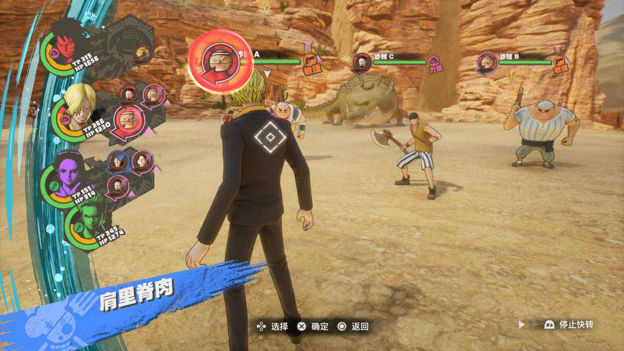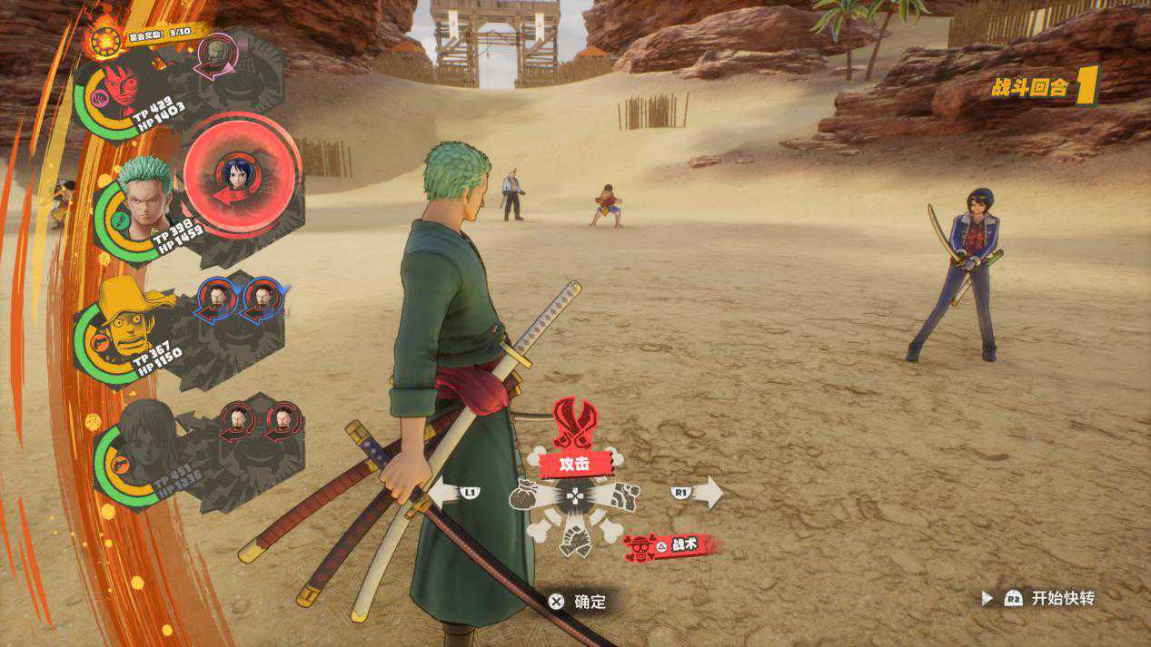 不过,“游戏节奏”说到底还是一个更加偏向直觉的东西,撇开不算太好的节奏,到这里为止,《海贼王:时光旅诗》给我的感觉其实还都不算太差。至少,它没有再像过去大部分《海贼王》作品那样,用“幻灯片”的形式将关键剧情一笔带过。在大部分时候,你能看到的仍是制作者的诚意,这点从本作专门设计的指令式战斗系统上,同样也能看得出来。