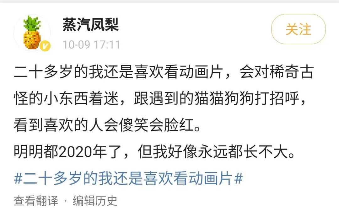 想起微博前几日有个热搜叫“20多岁的我还是喜欢看动画片”。
