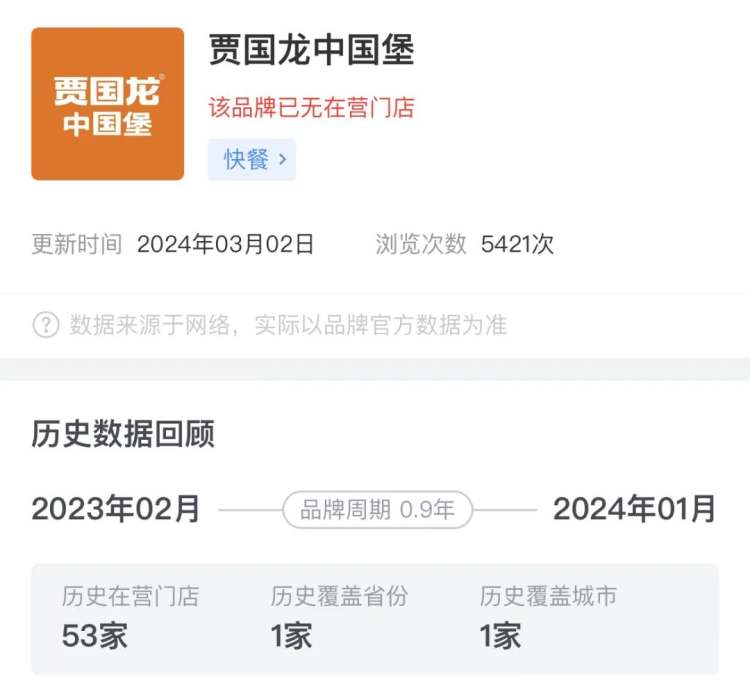 社交软件存续时间0.9年的“贾国龙中国堡”,目前已经查无此店。(图/窄门餐饮)