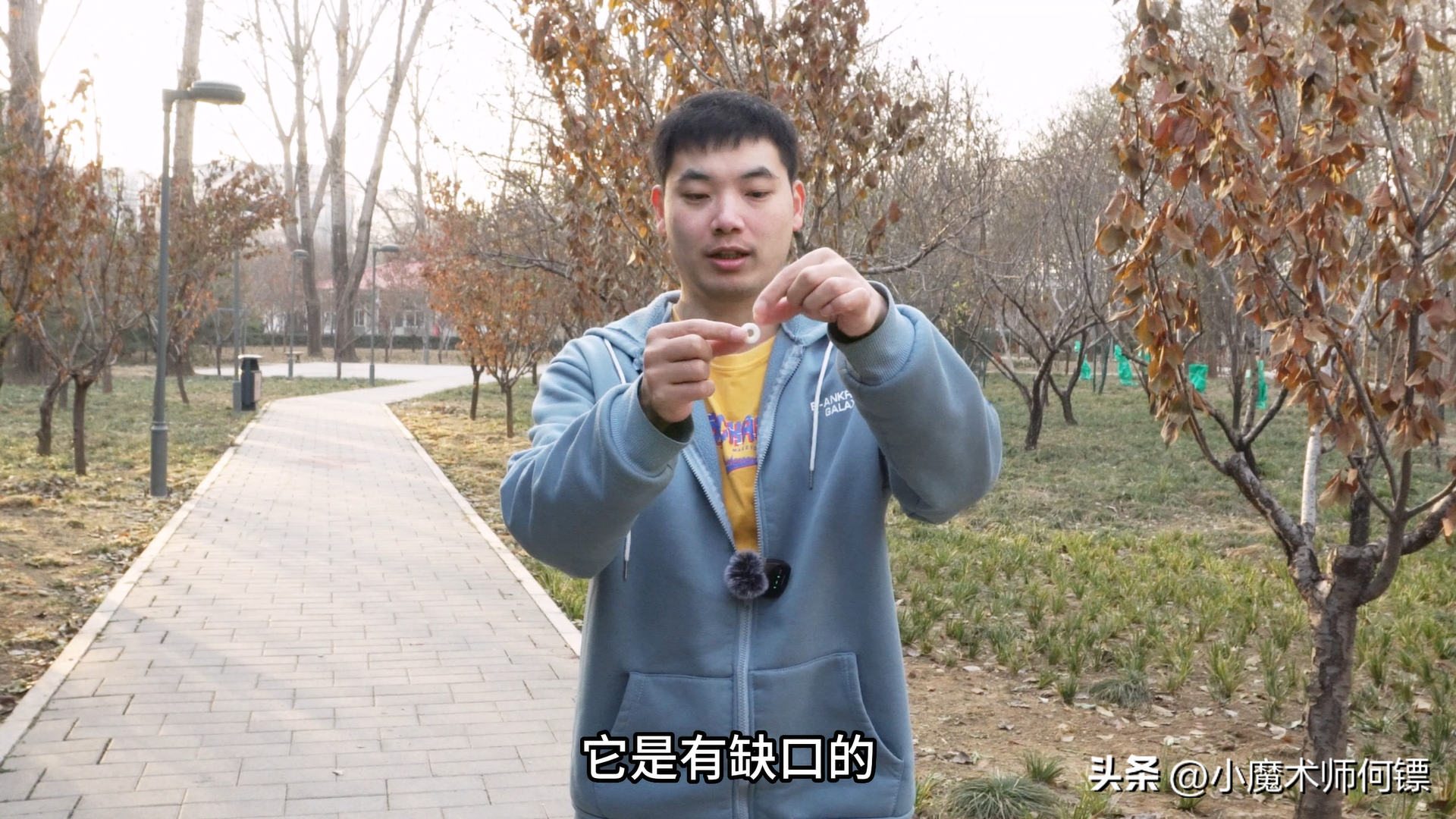 这是一个经典的魔术,让两个圈圈糖穿越到一起。其实是这个圈圈糖是有缺口的,