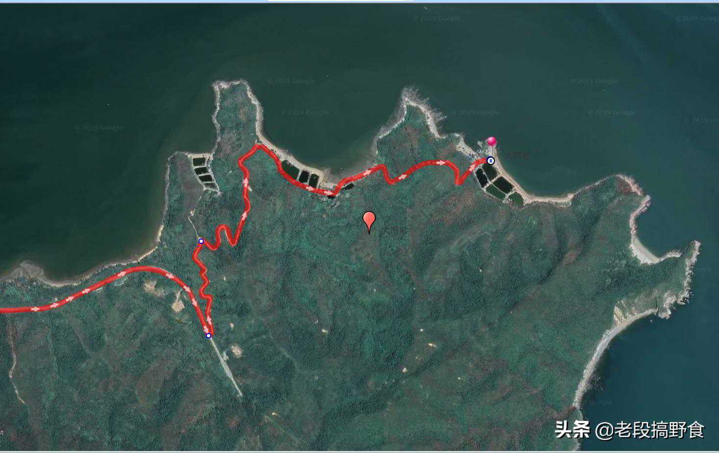 大网前的特点是暂未开发,可以比较随意地生火做饭烧烤之类的,而且这片海域的资源非常丰富,但缺点是基本没有沙滩。其实沙滩也有,就是最后一张卫星图的最右侧,大家能看到一片洁白的沙滩,那里的沙子很白很细,但是从停车的地方走过去大概八九百米,路也比较难走。