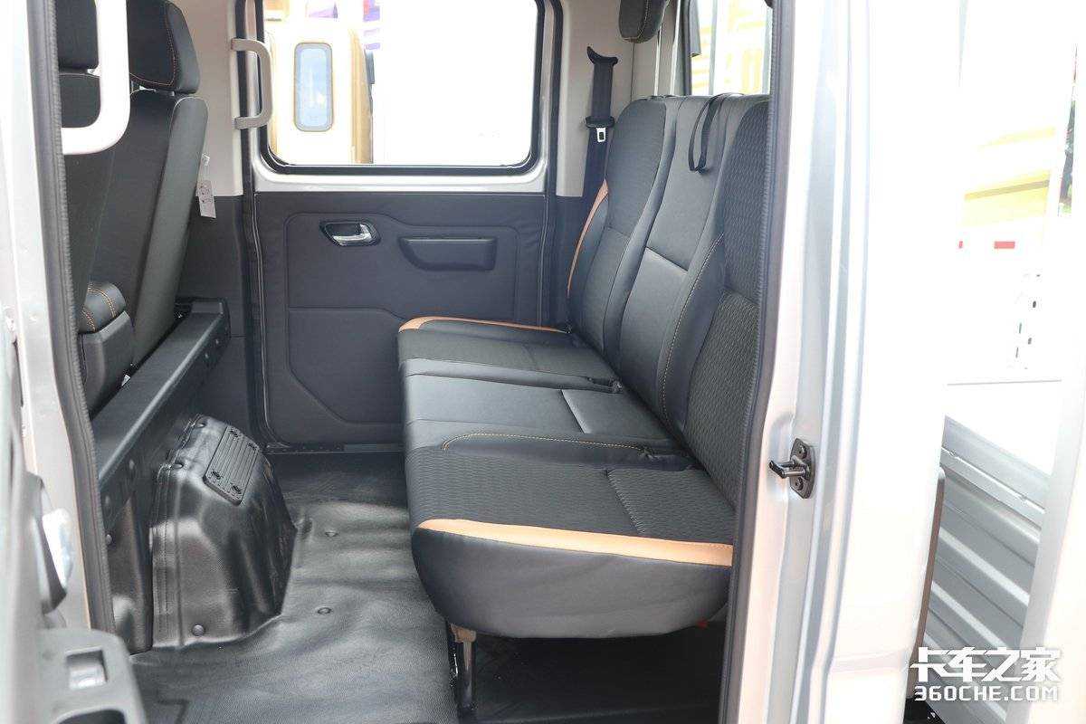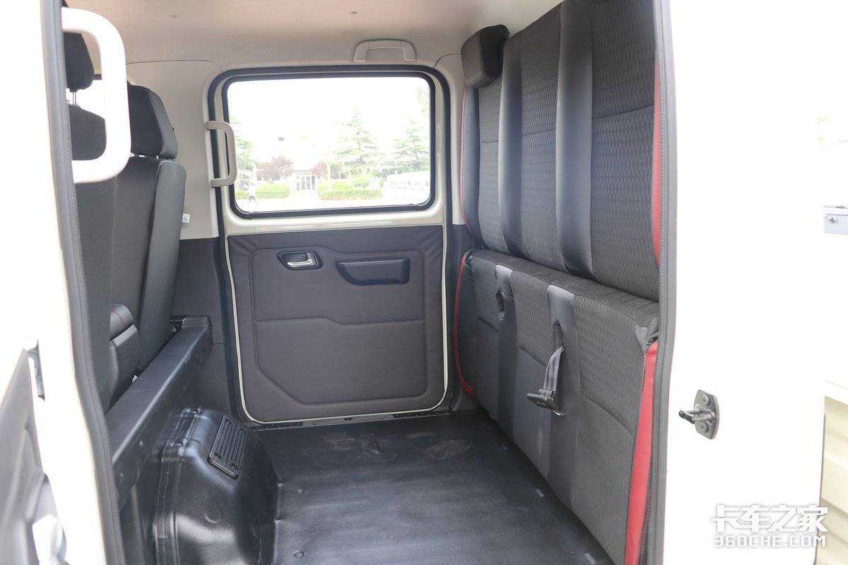 在进入驾驶室之前,我们先来看看整车空间表现,实拍车适配有1730mm宽双排驾驶室,前排日常乘坐两人是极为充裕的,后排如果不是三个200斤以上的壮汉外,也能拥有不错的空间表现,而且家装运输行驶里程都不会太长。