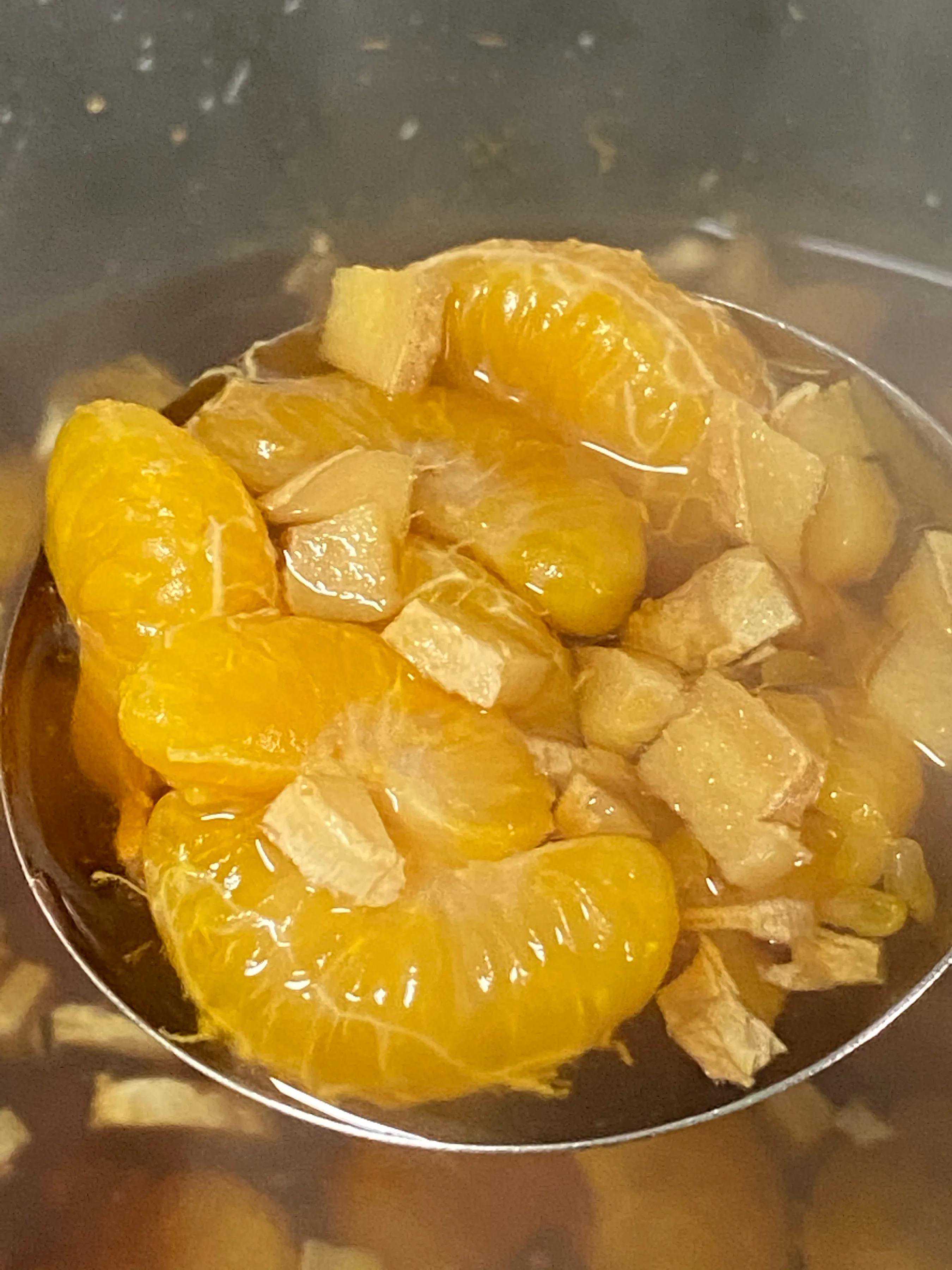桔子果肉因为融入了姜糖味,变成了口感和温度都升级的甜品!