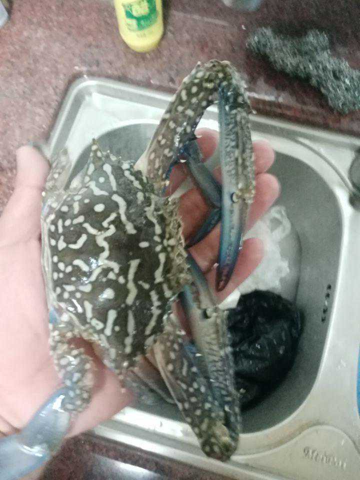 晚上准备把3只螃蟹当宵夜处理了,在处理前给兰花蟹单独留影一张纪念
