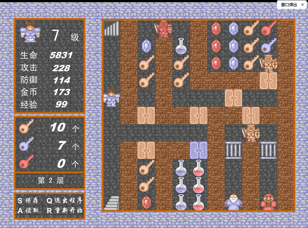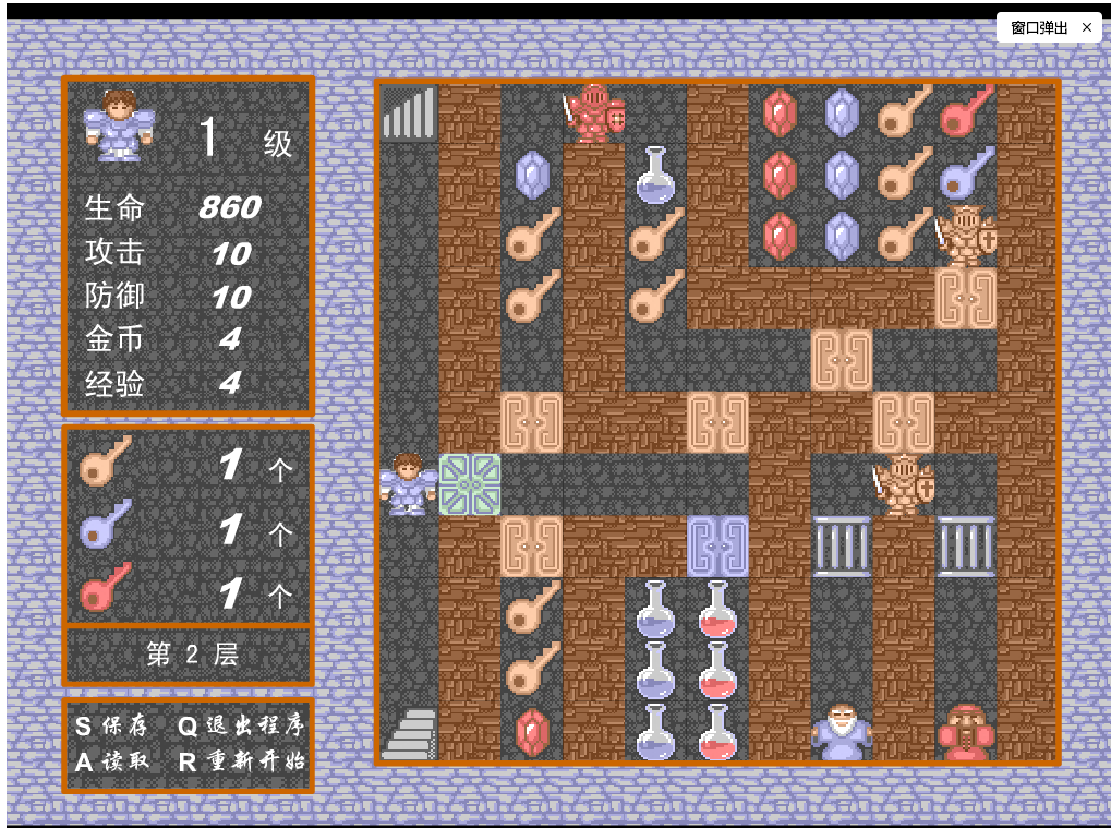首先,从第一层的仙子手里拿到三把不用颜色的钥匙。然后就开始我们的冒险旅程了。