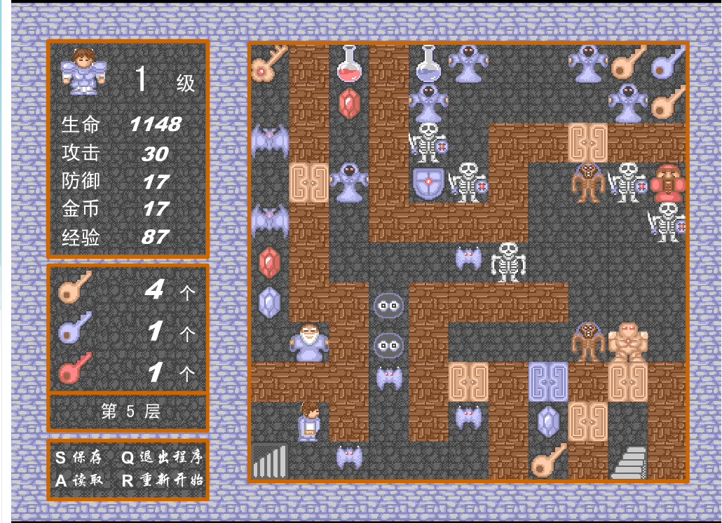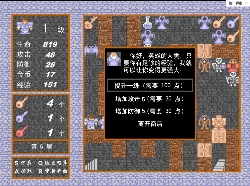 接下来就是第五层,第五层有一个很关键的点就是左下角的那个老爷爷是经验商人,打败怪物会获得经验和金币,金币在金币商店买能力,而经验就在这种经验商人出兑换能力。