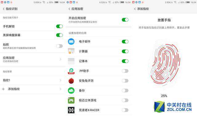 观3DV5手机支持录入最多5个指纹,并且在黑屏下使用指纹直接按压在识别区域,能直接完成解锁并进入桌面,整个过程无过渡动画使人觉得解锁十分迅速,并且准确性方面也十分出色,几天使用下来很少遇到一次不能完成解锁的情况。