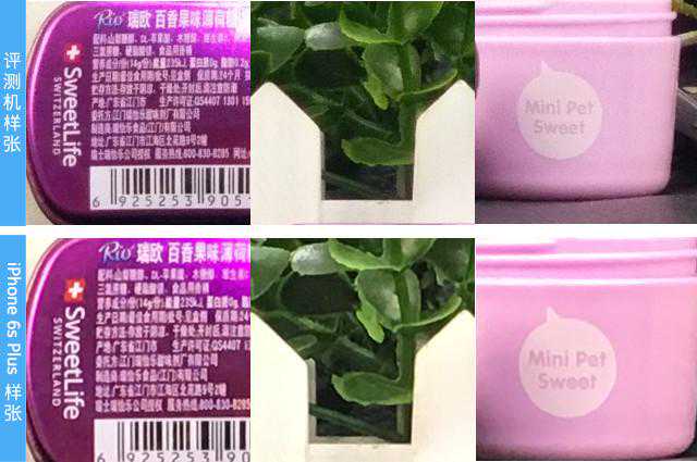 刚才外观部分介绍了主摄使用1300万像素,下面详细介绍一下该机的成像质量,首先是与苹果iPhone6sPlus做对比,场景为拍照台固定场景。