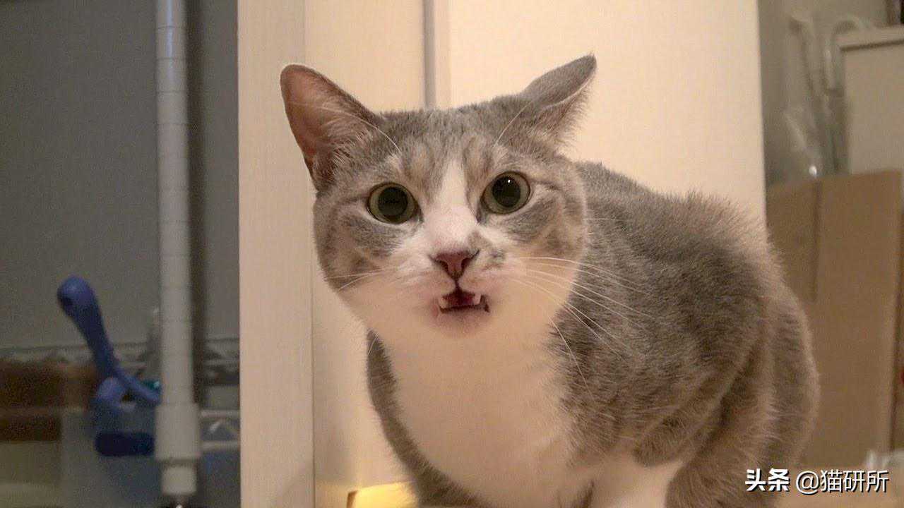这种看起来傻乎乎的表情,其实是一种裂唇嗅反应(FlehmenResponse),它是一种包括猫在内的哺乳动物,用置于上颚的特殊器官——犁鼻器,感知空气中信息素时的特殊反应。