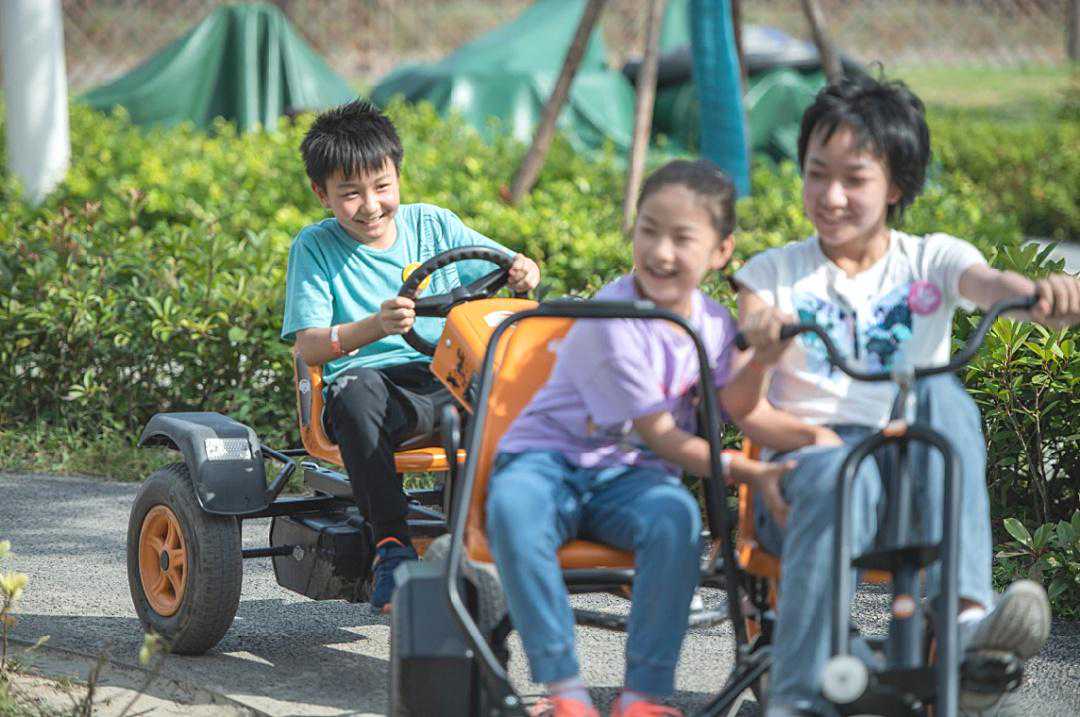 在蓝天白云下一起烧烤,大人们谈天,孩子们嬉笑。