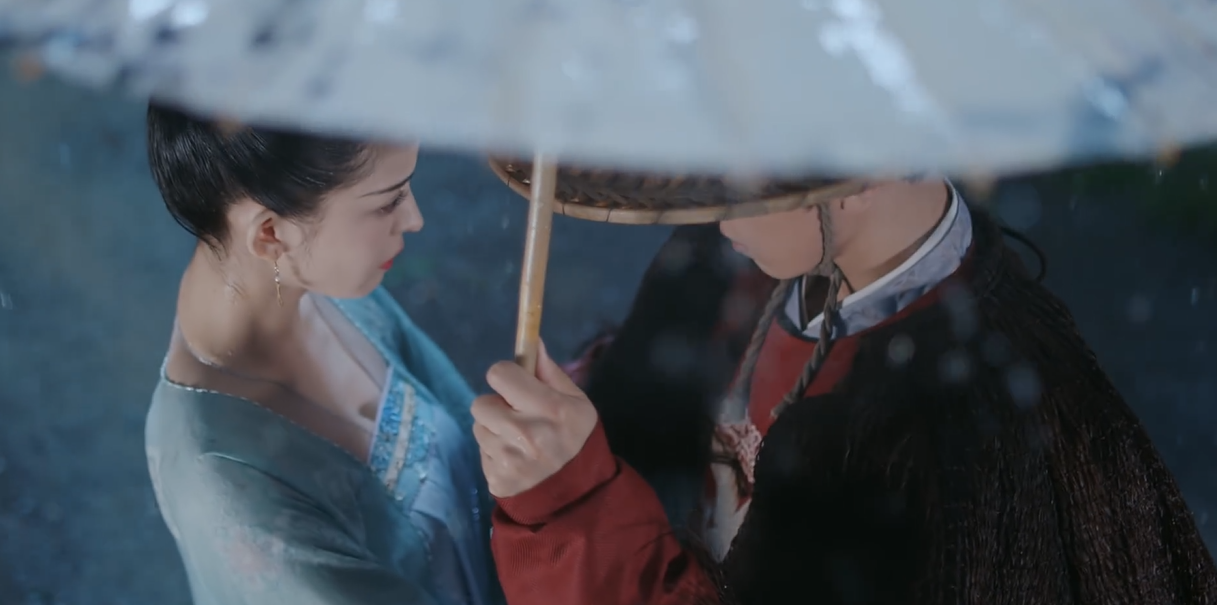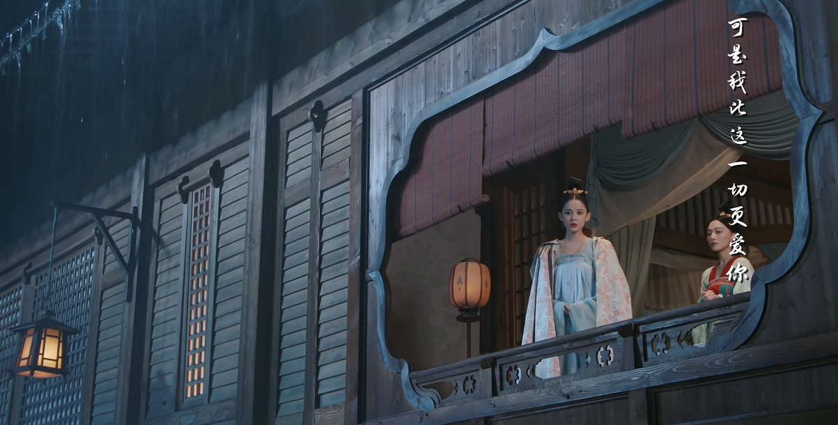 山上灯光和山下灯光,若隐若现,裴行俭和琉璃的感情却真挚得感人,一个守望,一个直奔而来,当山洪出现的时候,琉璃要下山提醒他们,而裴行俭也要上山救琉璃。