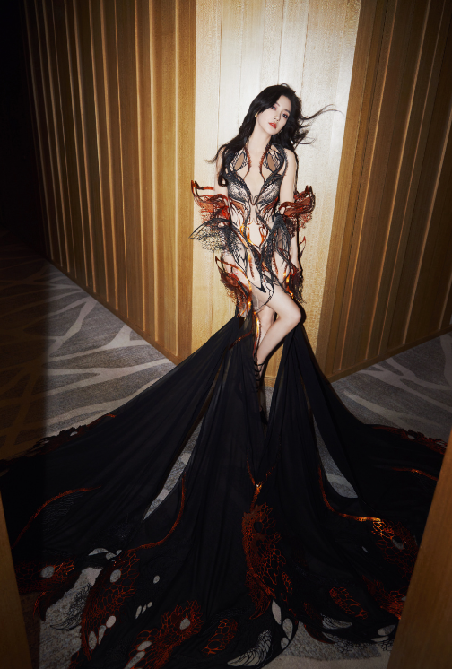 这一次,baby选择了一条清纯又性感的华丽礼裙,这是她上身的第18个高级定制品牌。