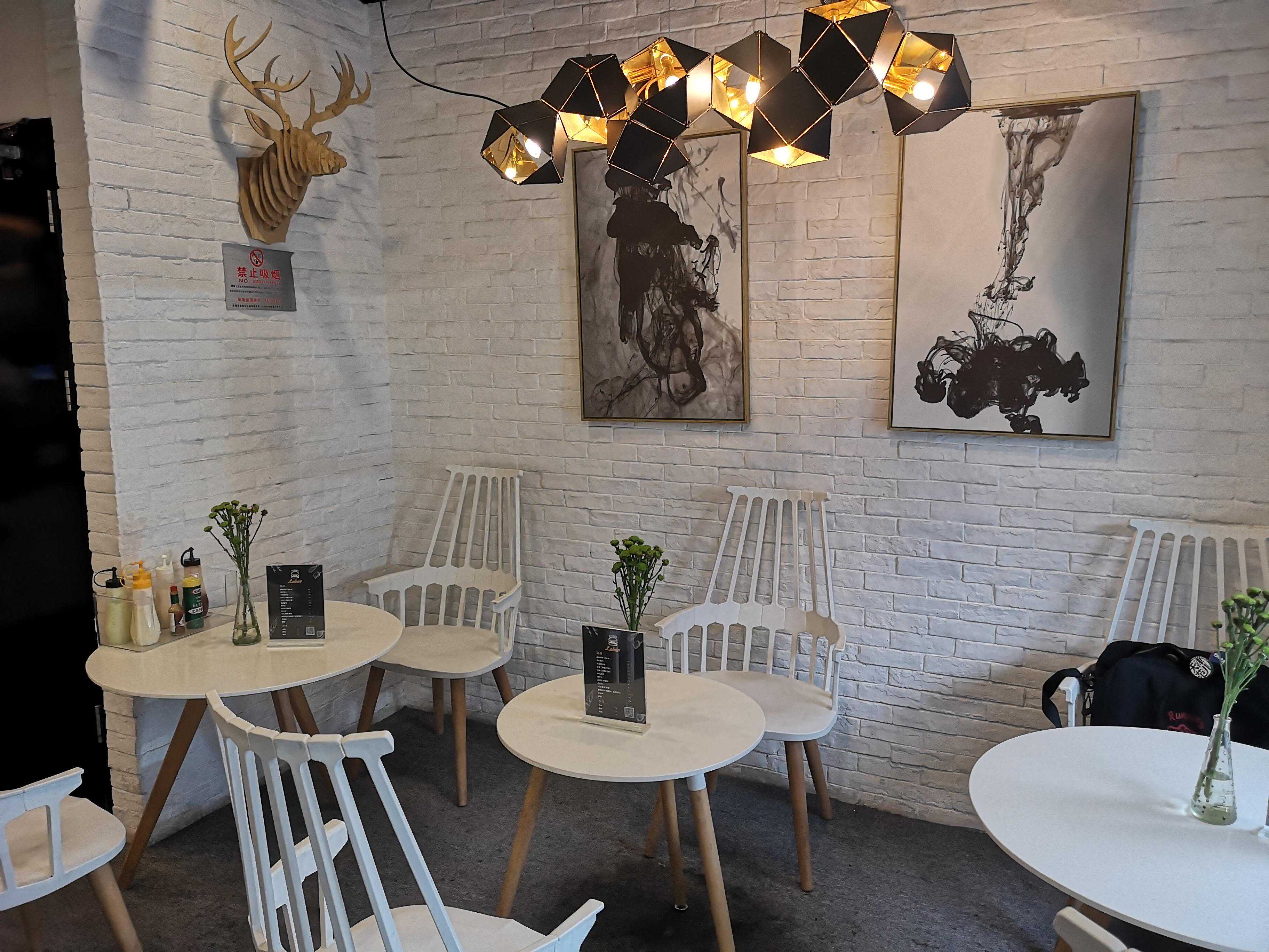 这家汉堡店在一家酒店一楼,店内只有三张桌子,但店主布置的环境很舒服,坐在店里能看到厨师在半开放的厨房里制作着汉堡,看向窗外可以看到来往的人群,如果赶上放学的时间,还会看到很多接孩子的家长。