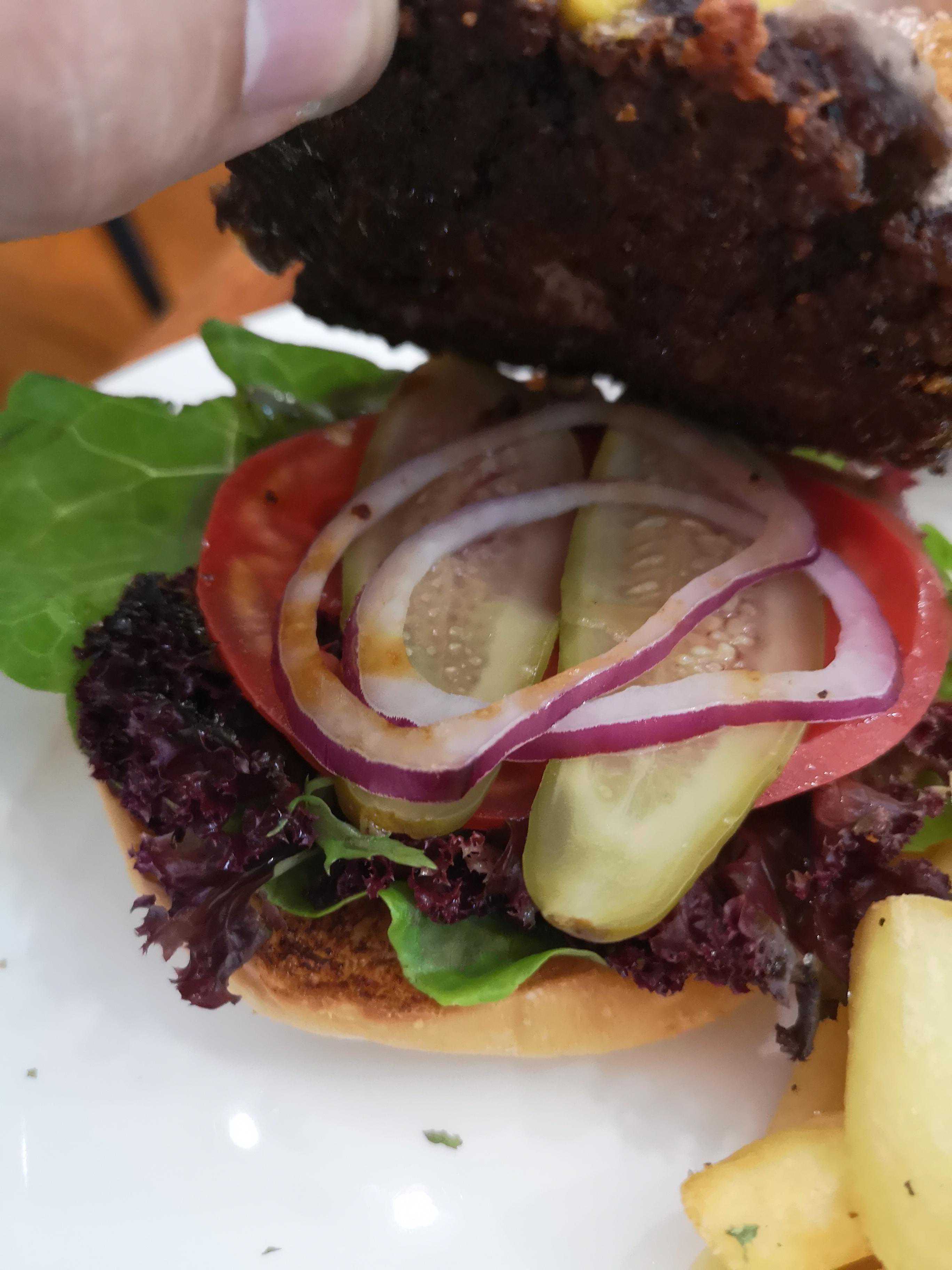 推荐牛肉汉堡,牛肉很厚实,酸黄瓜等配菜也很足。面包胚很酥脆,肉饼香嫩多汁,香而不腻,吃到嘴中饱满而又丰富。咬一口你会感受到肉排中的汁水融入口腔,肉排很软嫩我很喜欢。缺点:我个人很喜欢吃他家汉堡,如果你不耐吃比较软的肉排可能就不适合你。