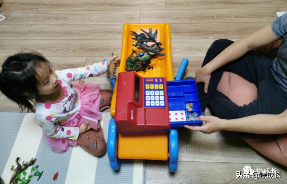玩法:事先准备一些玩具、画具、绘本当做商品。然后把扑克牌分成两堆,和孩子各拿一堆,轮流当收银员和买东西的人。